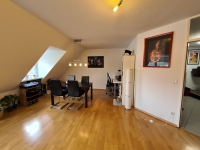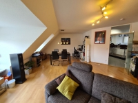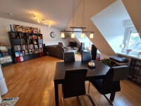 Die Wohnung befindet sich im III. OG + DG eines sehr gepflegten Mehrfamilienhauses, Baujahr 1996 und entspricht den damals geltenden Wärmeschutzbedingungen. Sie verfügt über ein geräumiges Wohn-/ Esszimmer mit gemütlichen Gauben und einem tollen Blick auf das Siebengebirge, eine halboffene Küche (incl. EBK) mit Waschmaschinenanschluss und eine geräumige Diele, welche ebenfalls als Essbereich gestaltet werden kann. Über eine Wendeltreppe erreichen Sie das Dachgeschoss, in welchem sich das großzügige Schlafzimmer mit separater Abstellkammer sowie das helle Tageslichtbad mit Badewanne, Waschbecken, WC und Fenster befinden. Das Bad, die Diele und die Küche sind hell verfliest. Im Schlafzimmer ist ein Teppichboden verlegt, das Wohn-/Esszimmer ist mit einem hochwertigen Parkettboden ausgestattet. Zur Wohnung gehören ein Kellerraum, ein Duplex-Tiefgaragenstellplatz (inkl.) sowie ein Waschkeller mit Münzwaschmaschine. Ein Kabelanschluss ist vorhanden. Die Wohnung ist mit Rollläden ausgestattet, an den Dachflächenfenstern befinden sich Jalousien der Firma Velux, geheizt wird über eine Gaszentralheizung. Durch die Lage im Haus, III. OG ohne Aufzug, eignet sich die Wohnung perfekt für sportliche Mieter. Bitte schreiben Sie in jedem Falle eine Email über das Kontaktformular, Anrufe können wir leider auf Grund der hohen Nachfragen nicht beantworten.